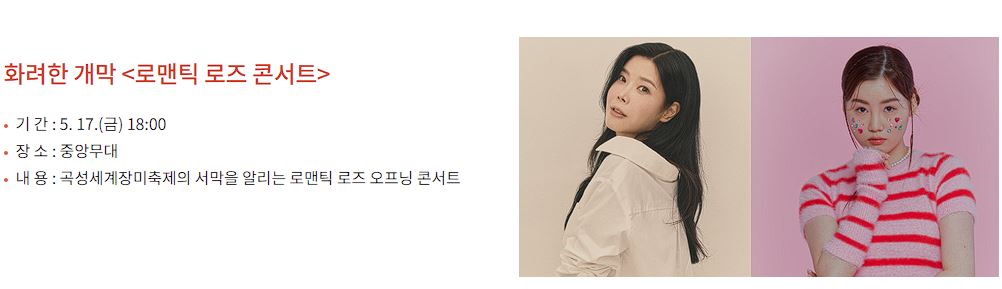 곡성장미축제는 5월 17일부터 초대가수로 다양한 행사공연이 펼쳐집니다. 상세 일정 알려드릴게요!